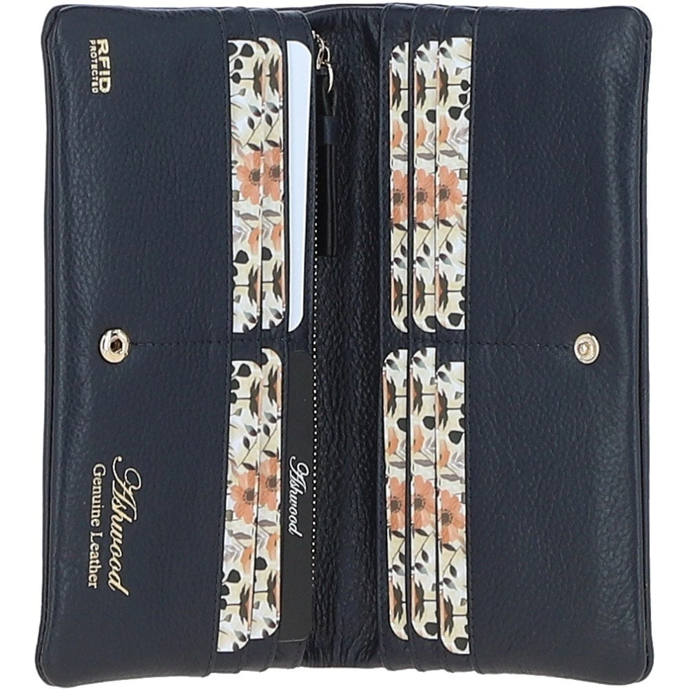 14 Card RFID Protected XL Leather Purse Navy: S-4