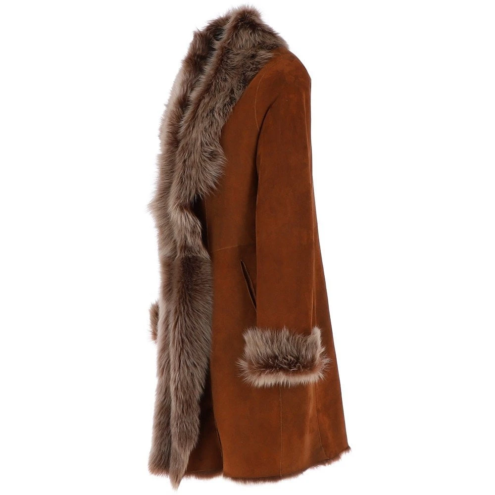 3/4 Length Toscana Suede Leather Coat Whisky: 5055
