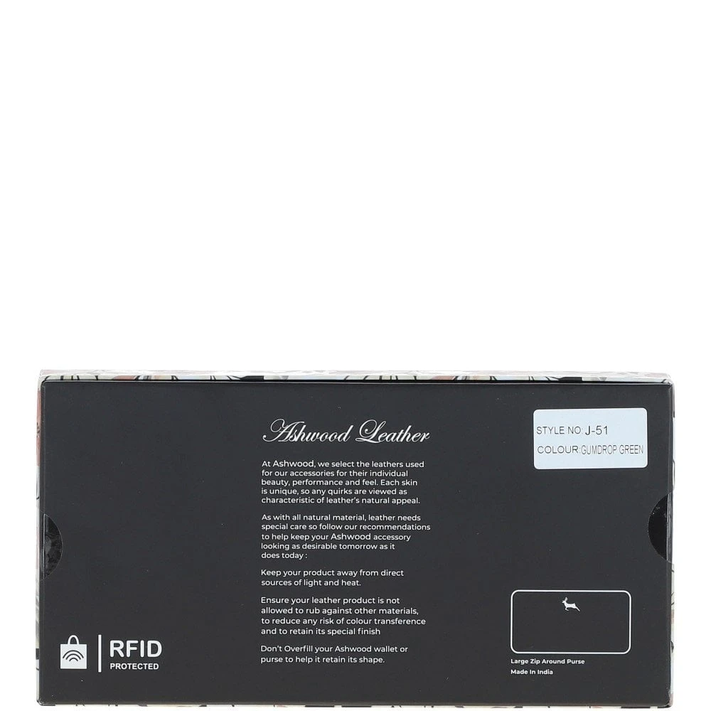 8 Card Zip Around RFID Protected Large Leather Purse Gumdrop Green: J-51