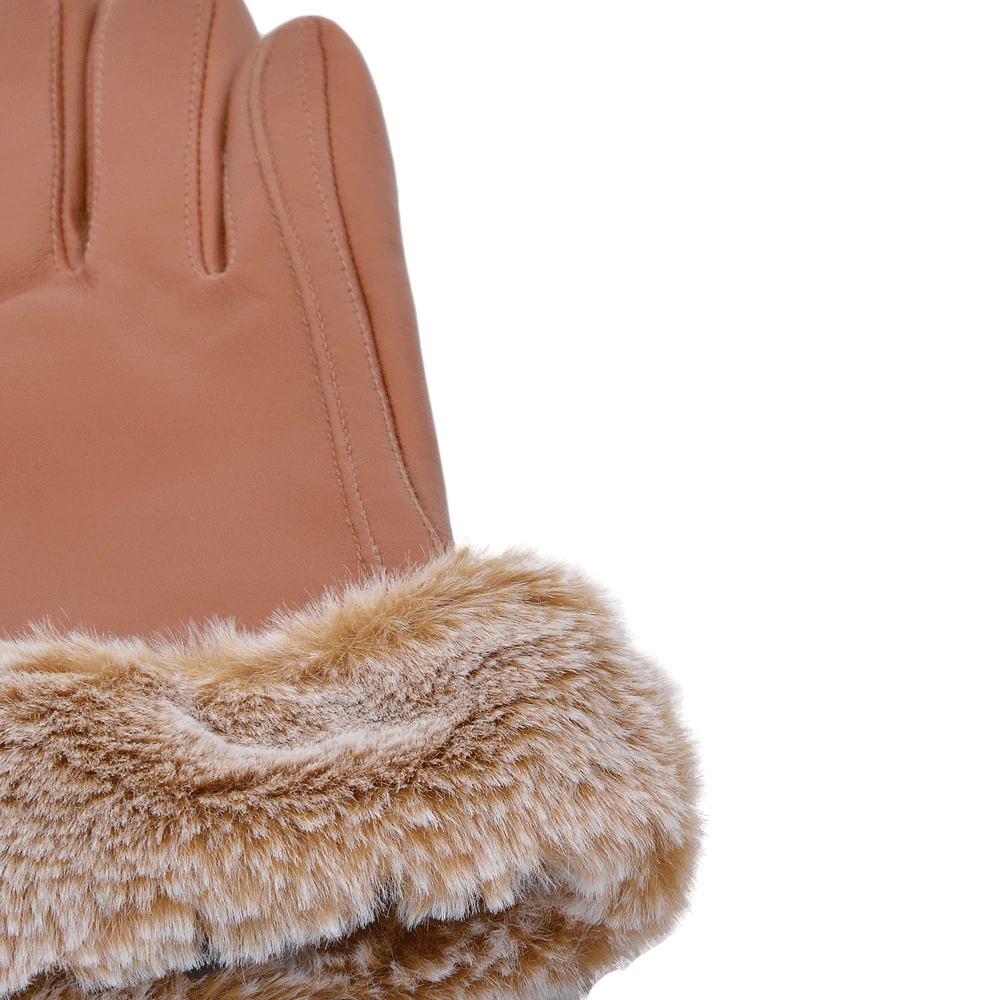 Womens Faux Fur Tipped Leather Gloves : 678