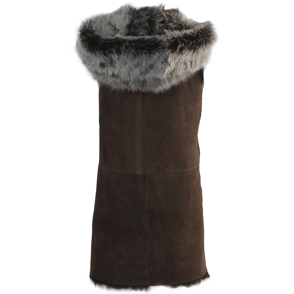 Womens Hooded Long Suede Toscana Gilet : Mariana