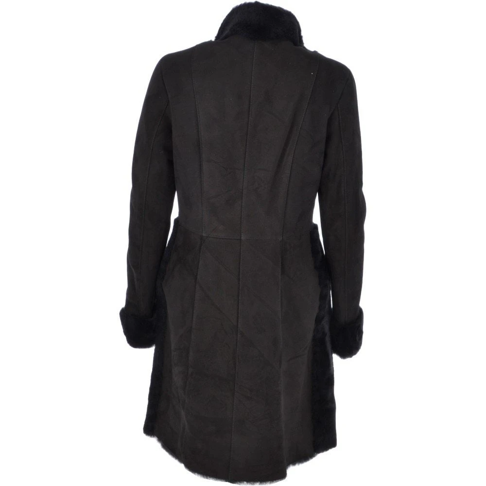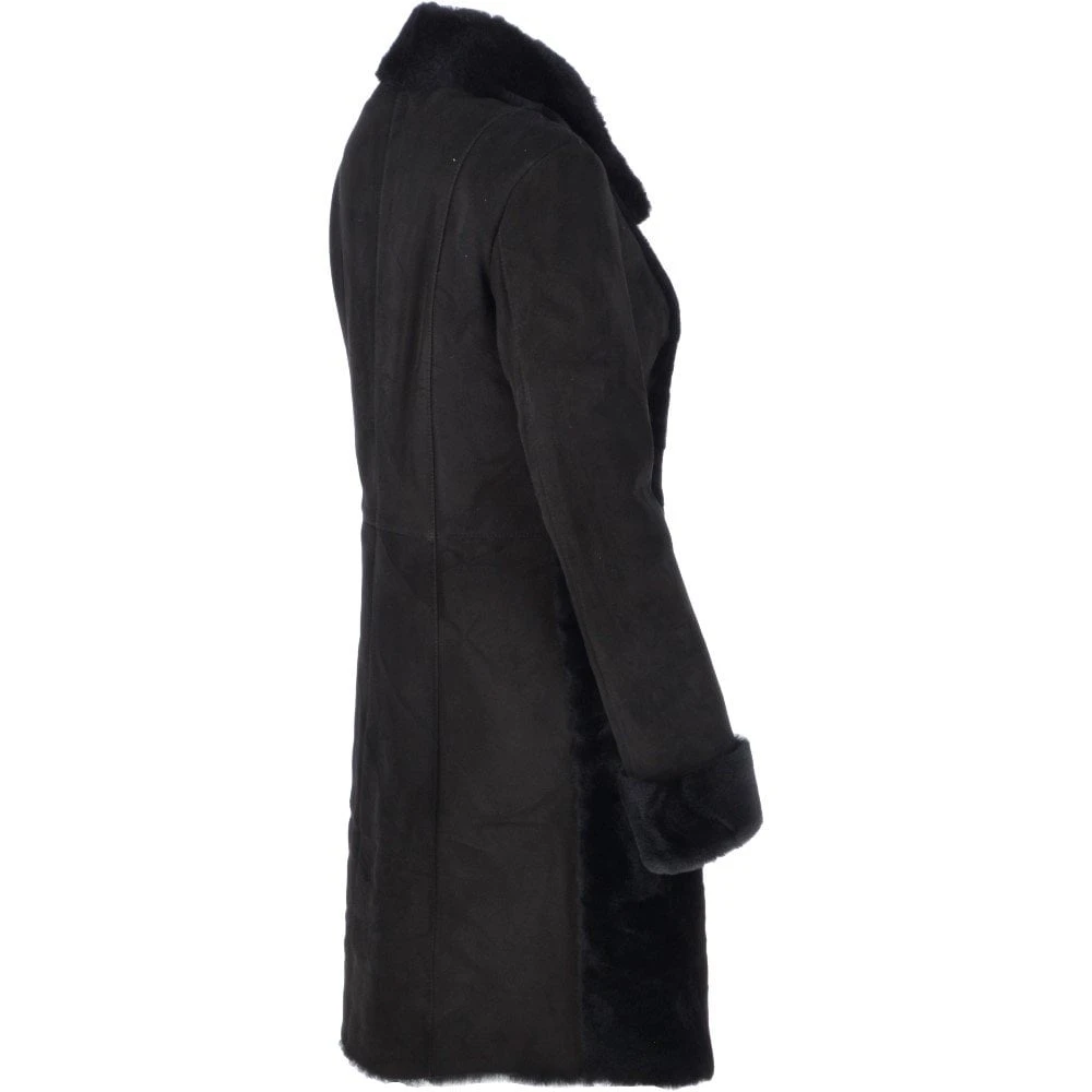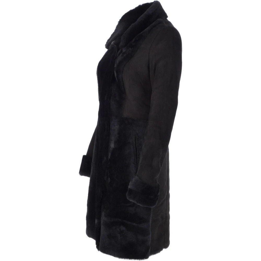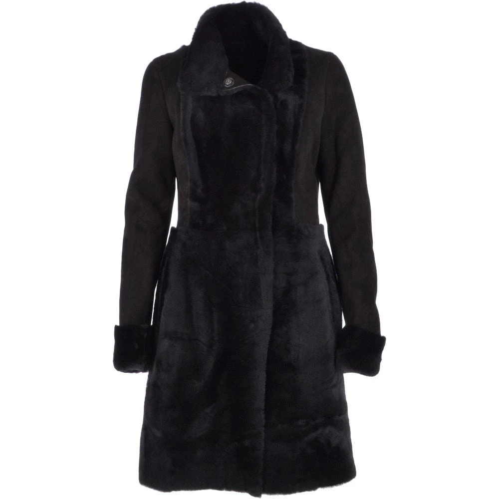 Online and exclusive to Leather Company, Estimo’s Lucasta black sheepskin coat is a modern take on a classic style ladies sheepskin, bringing a modern and classy look. With a close fit to the body tailoring to allow for a perfect feminine silhouette in a beautiful suede sheepskin with a hand-buffed suede panel finish to create a sumptuous soft velvety feel, with patched sheepskin panels to the outer shell. A perfect wardrobe piece and ideal for keeping those cold days at bay.