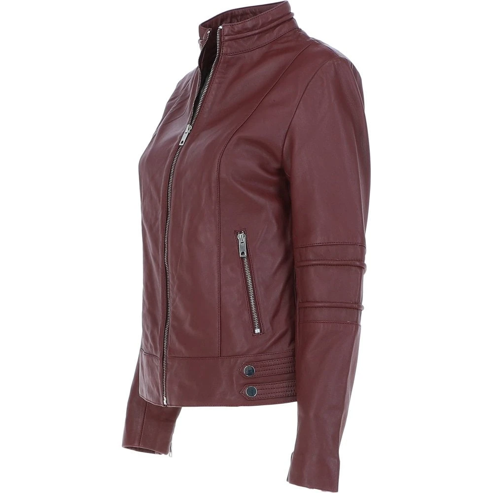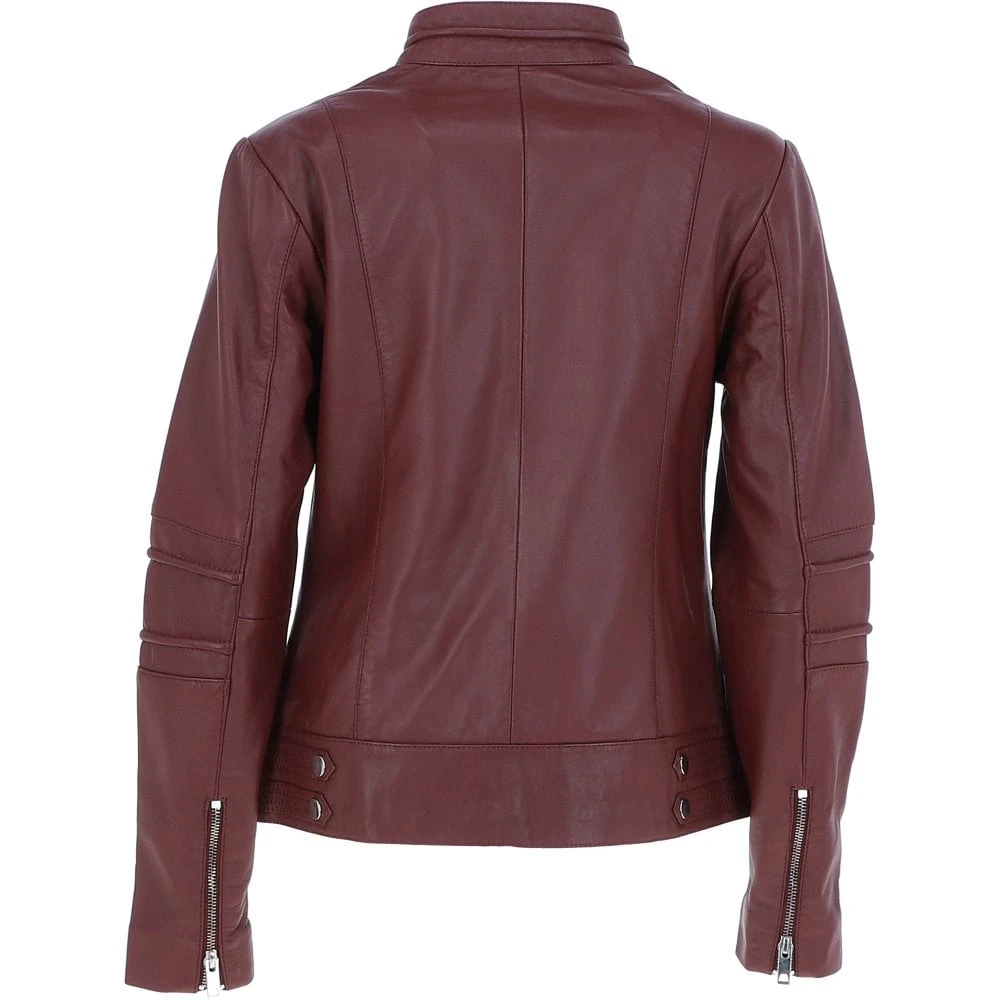 Handcrafted modern biker jacket in a soft buttery leather. With its simple clean lines, biker detailing, timeless styling, complete with a hand rubbed finish. The Lillian ladies leather jacket is a must have for any woman looking for a wearable modern biker style jacket which can be worn with any type of apparel.