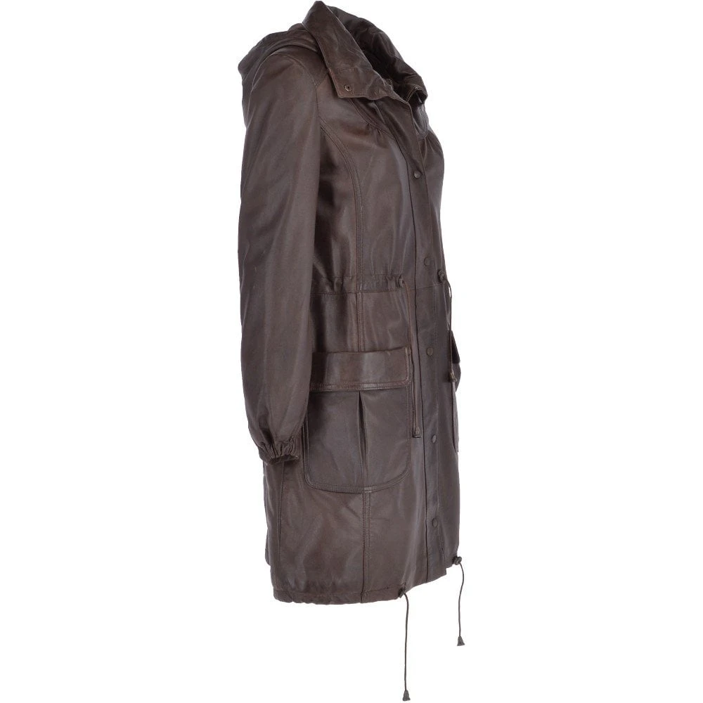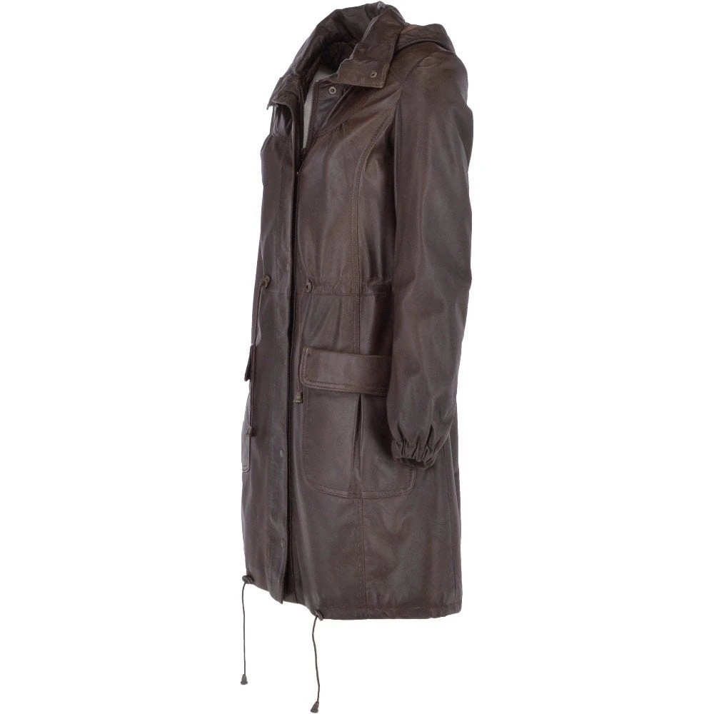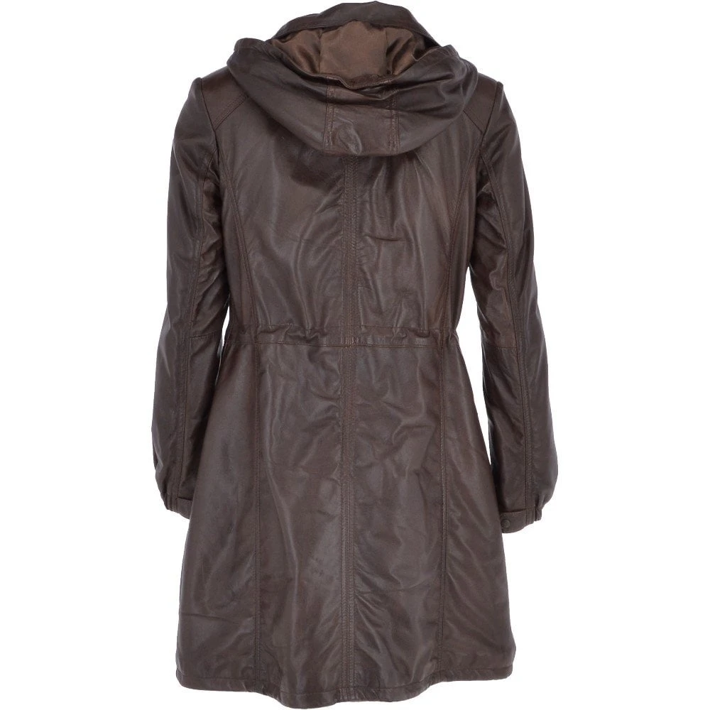 Womens Leather Duffle Leather Coat Mid Brown/ app: Brienne