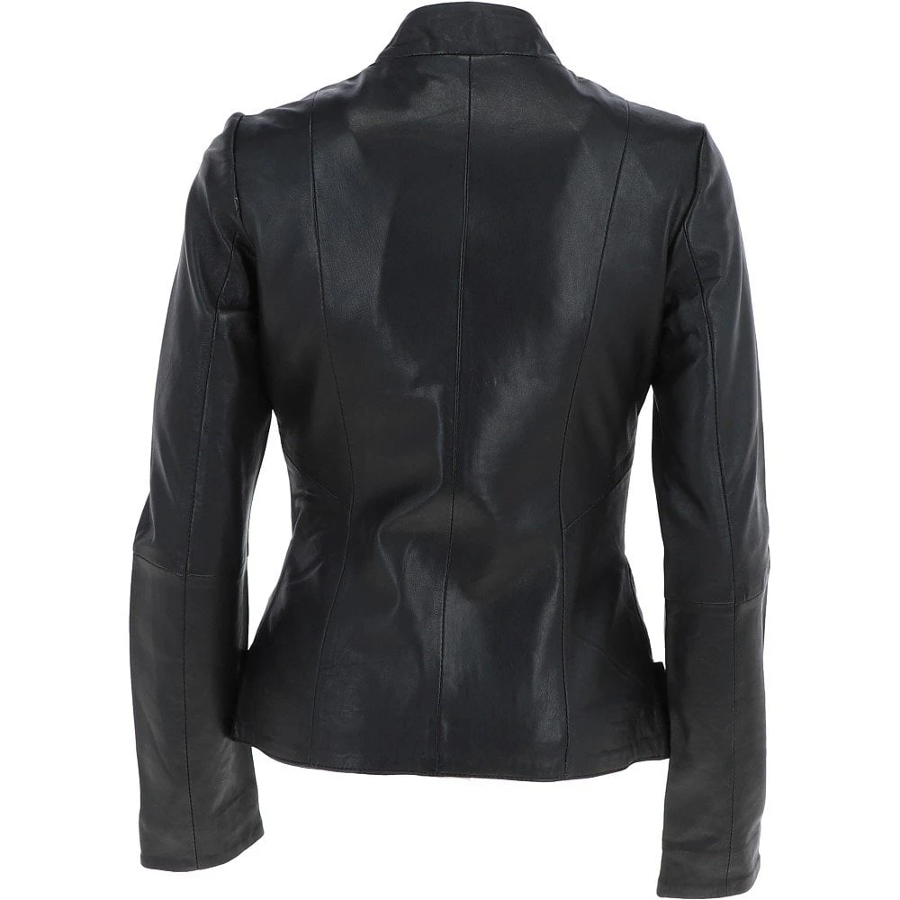 Versatile, modern and minimalist styling, this luxury leather jacket adds clean lines for a flattering urban feminine look. Crafted in soft nappa leather, attention to detail stitch seam detailing, with two functional zip pockets for your handy essentials.