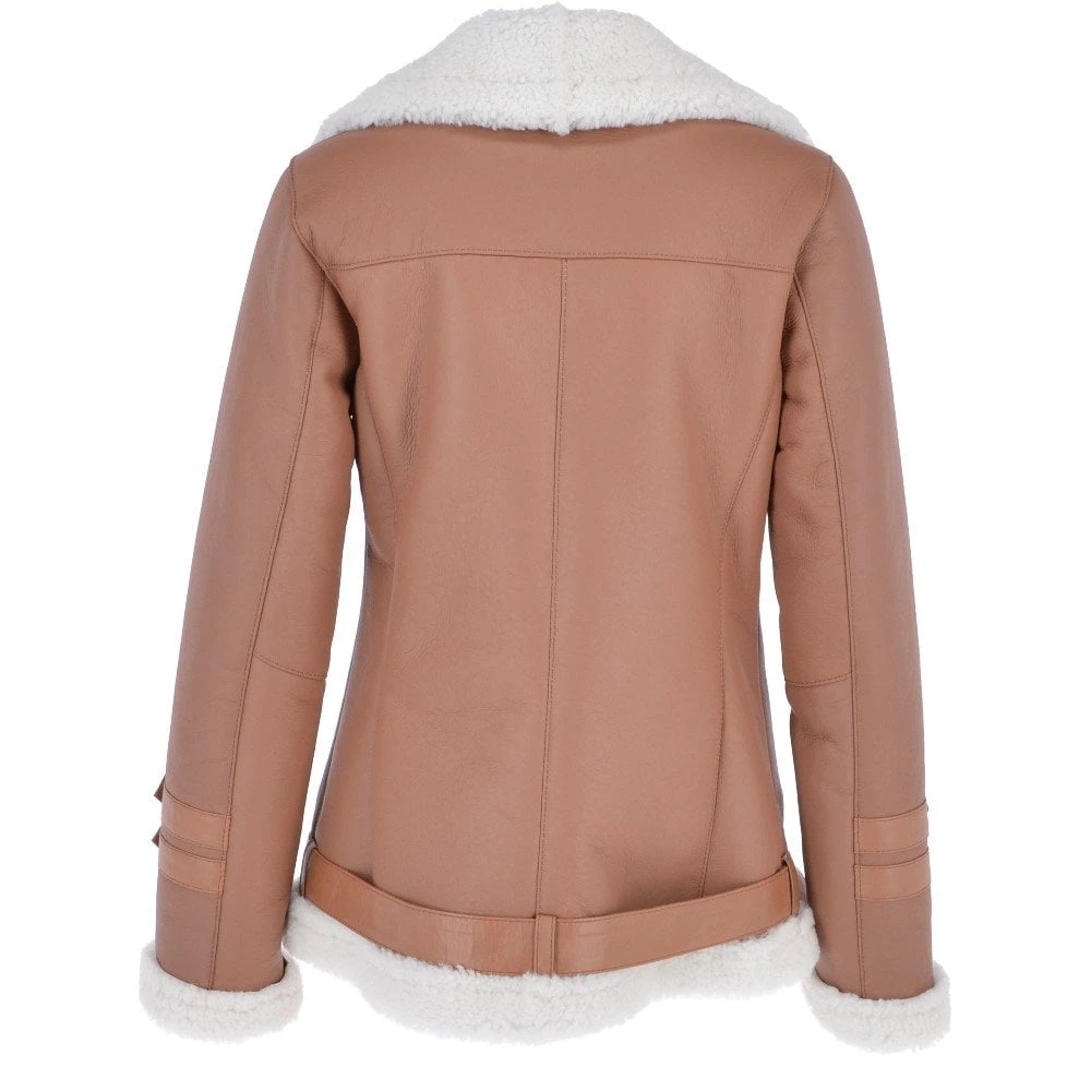 Womens Luxury Side Zip Sheepskin Pilot Jacket Light Tan : Caitlin