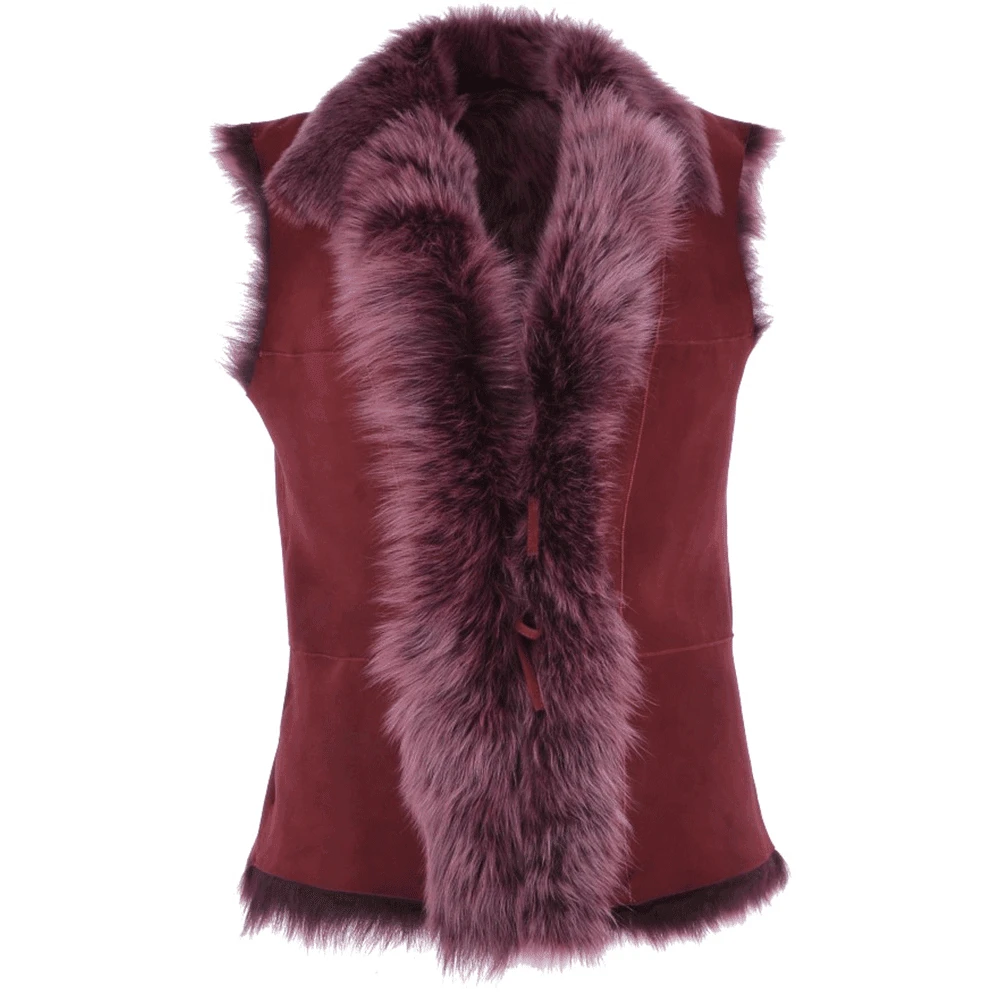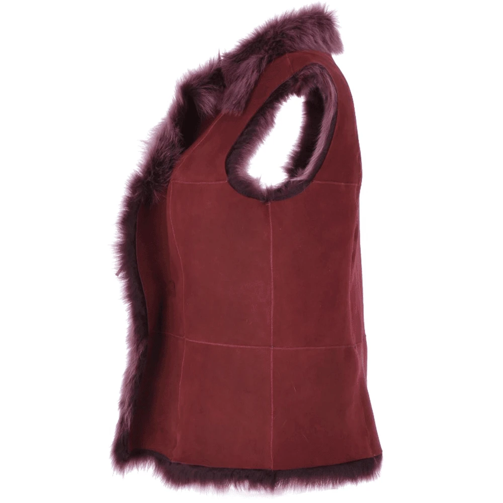 Reversible Toscana Suede Leather Gilet Burgandy : Kashmina