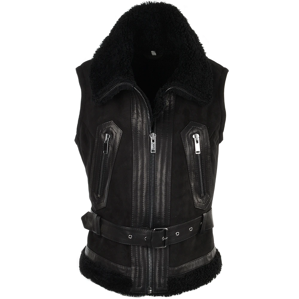 Shearling Leather and Suede Biker Gilet : Indiana