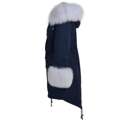 Hooded Toscana Tipped Fur Parka With Detachable Fur Trim Lining Blue/white : Kaylee