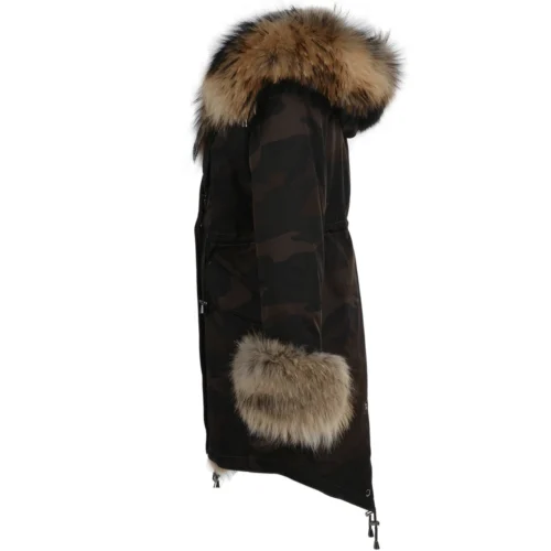 Hooded Toscana Tipped Military Parka With Detachable Fur Trim Lining Khaki Green/ Brown : Kaylee