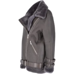 Womens Oversized Sheepskin Flying Jacket Black/Snuff : Khloe