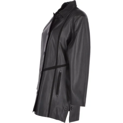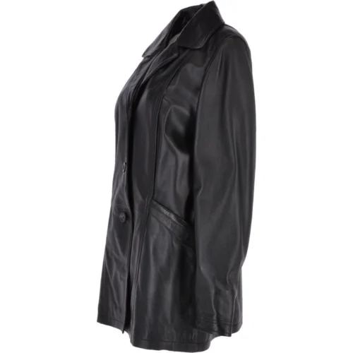 Womens Single Breasted Oversized Leather Coat Black/ani : Fiona