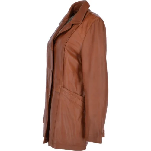 Womens Single Breasted Oversized Leather Coat Mid Brown/app : Fiona