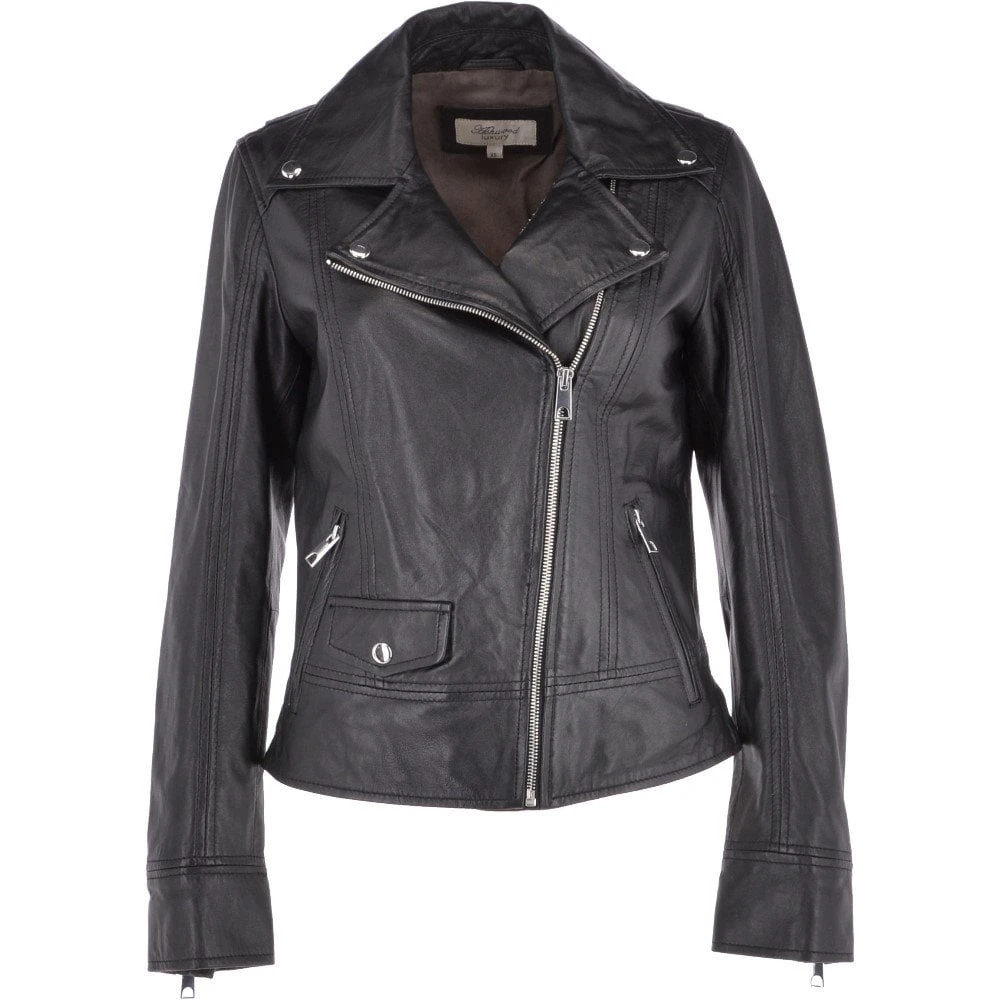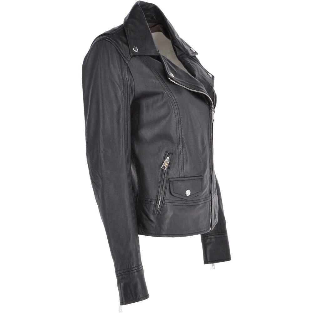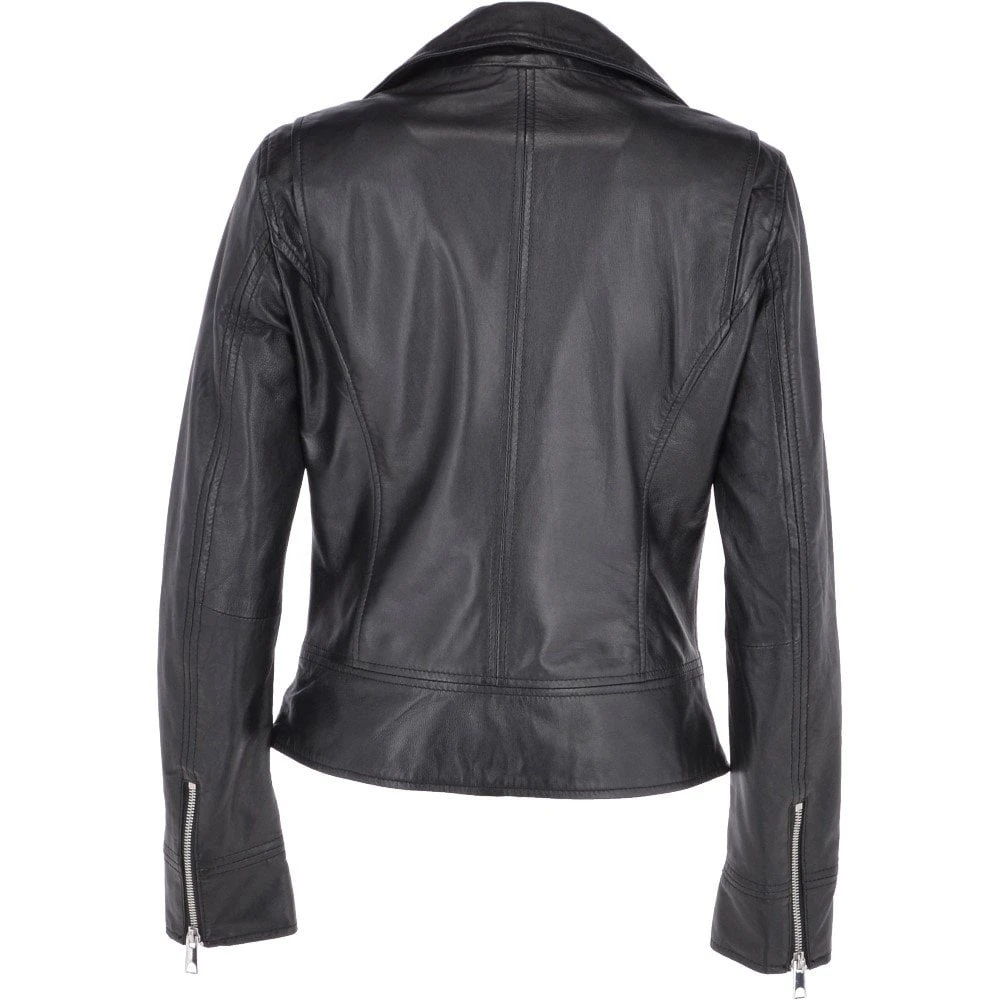 Online and exclusive to leather company. Alyssa is black biker jacket, crafted in a soft leather finish to give a luxury to touch feel. Expect a regular fit, zip closure fastening, and two functional hand pockets and biker style cuffs. The biker style has been around for just under a century and its here to stay. An iconic symbol of rebellious attitude that has seen its influence at different times over the years. This particular style further enhances the ideas of rebellion and adventure.