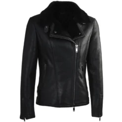 Womens Side Zip Biker Sheepskin Pilot Jacket : Micaela