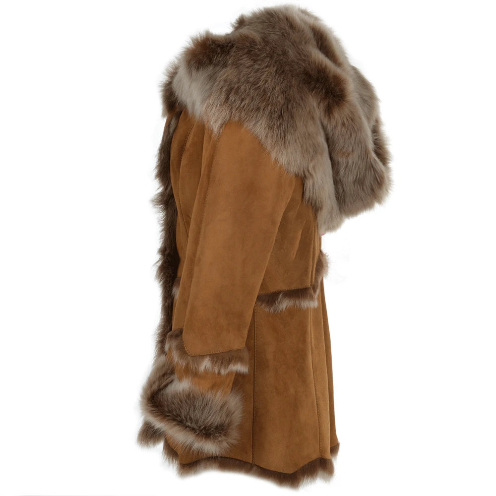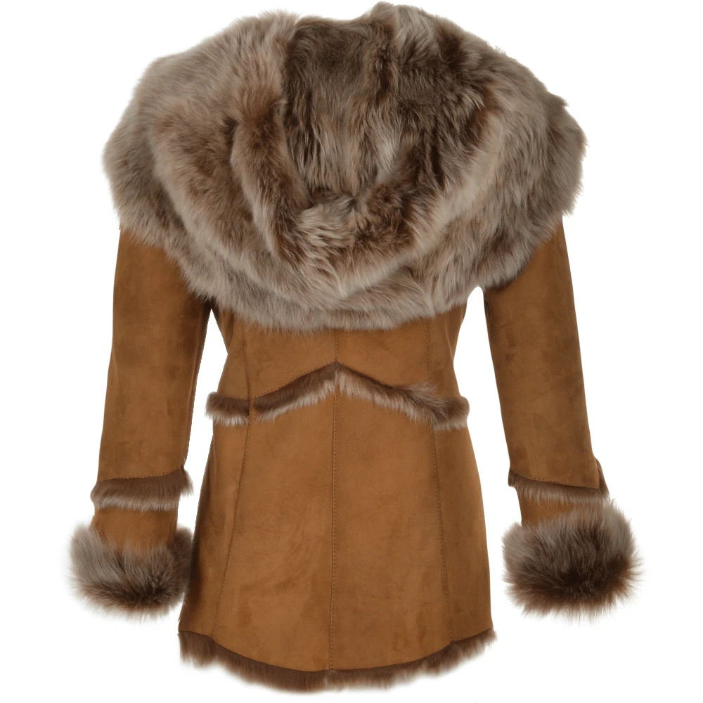 Toscana Longhaired Shearling Jacket With Large Hood Tan : Muna