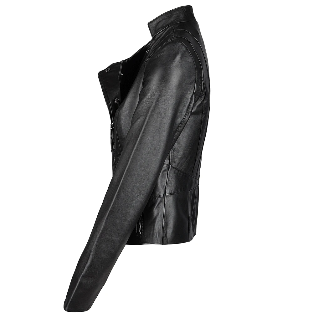 Ladies Vegetable Tanned Leather Biker Jacket Black : Rosabel