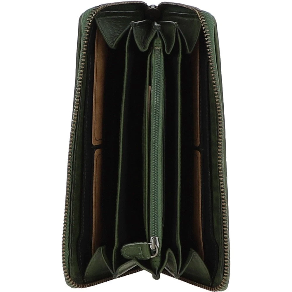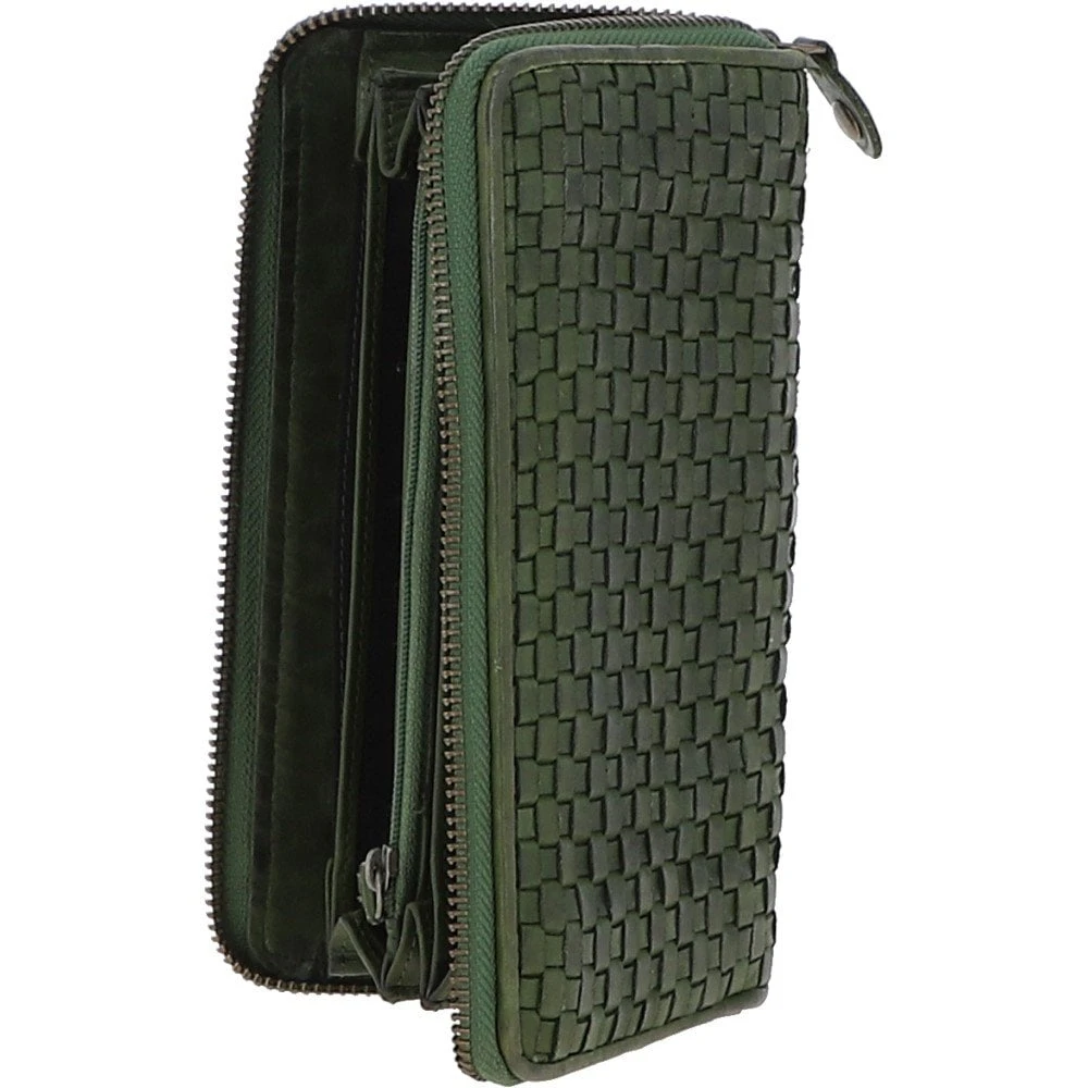 Vintage Woven Leather Zip Around Large 10 Card Coin Note Purse Green : D-81
