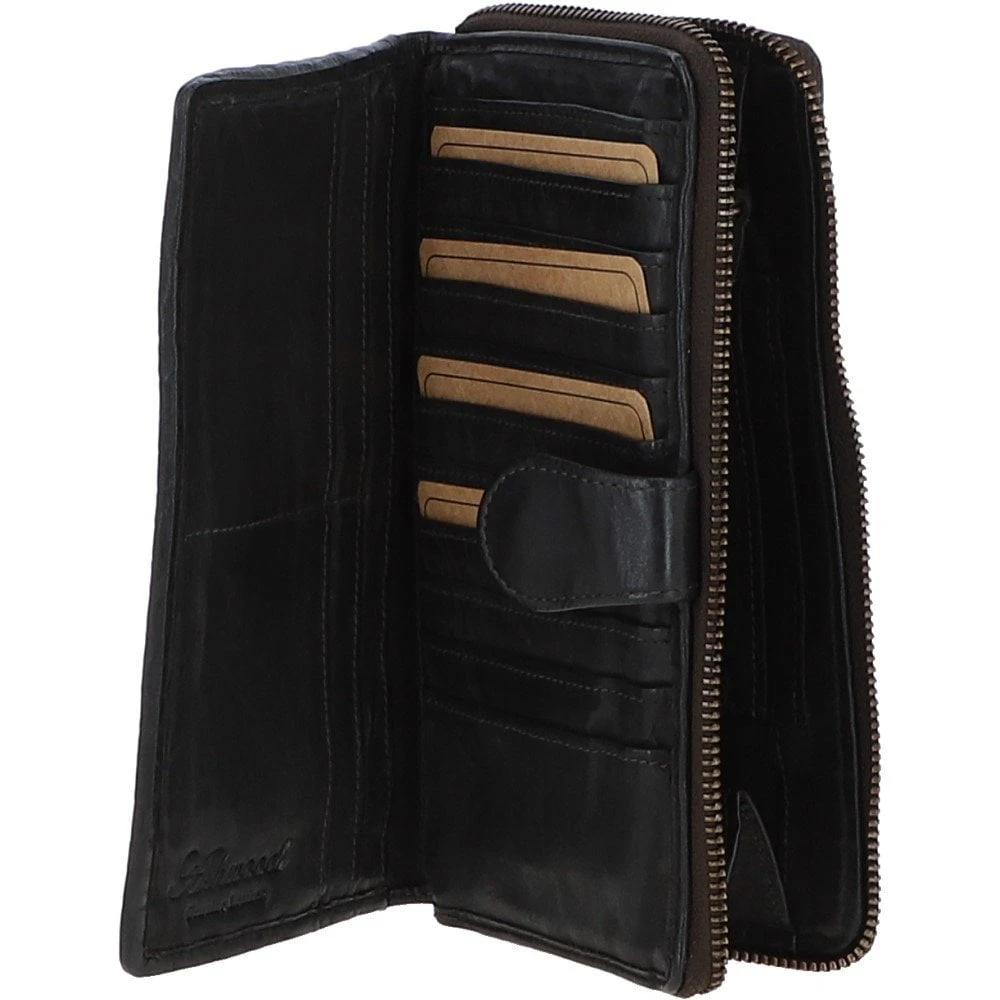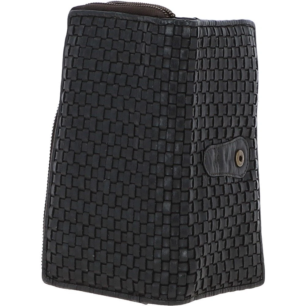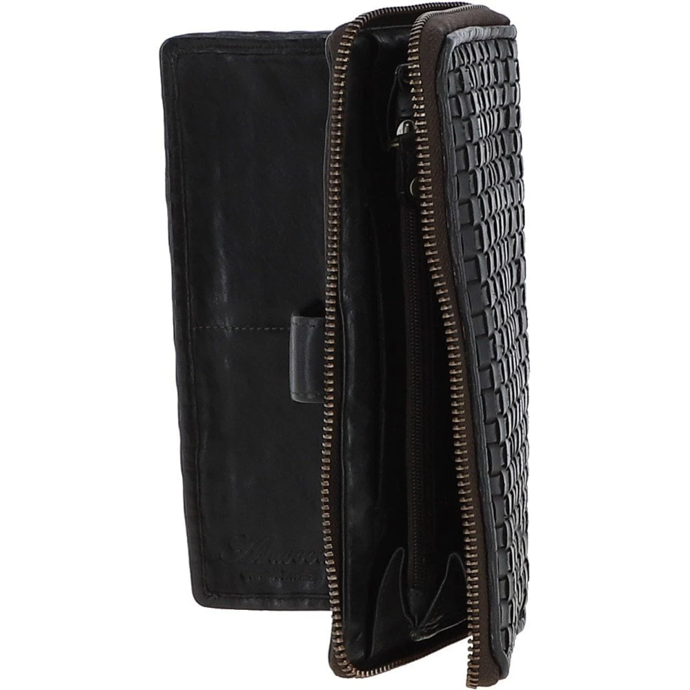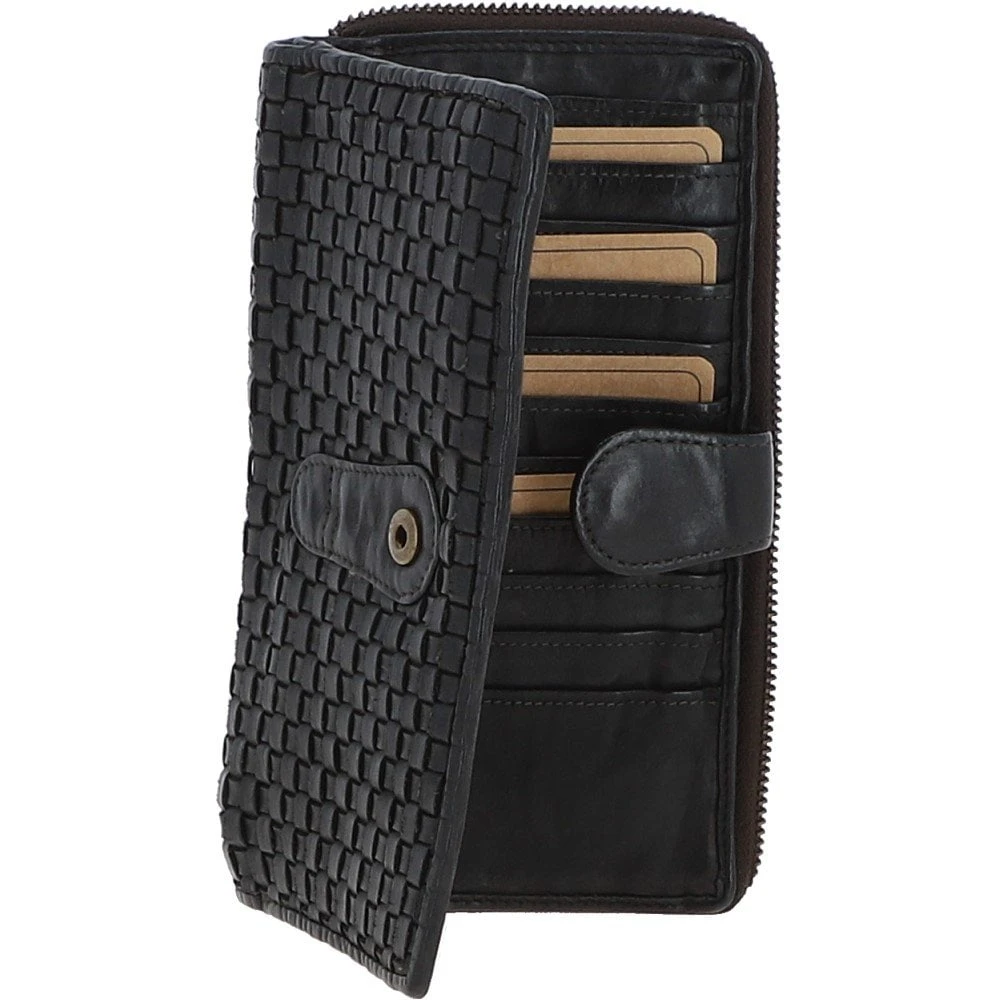 Vintage Woven Leather Zip Around Large 22 Card Coin Note Purse Dark Grey : D-84