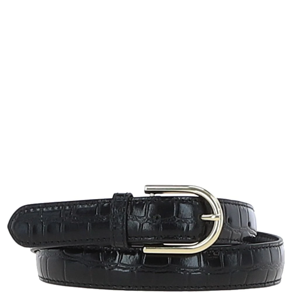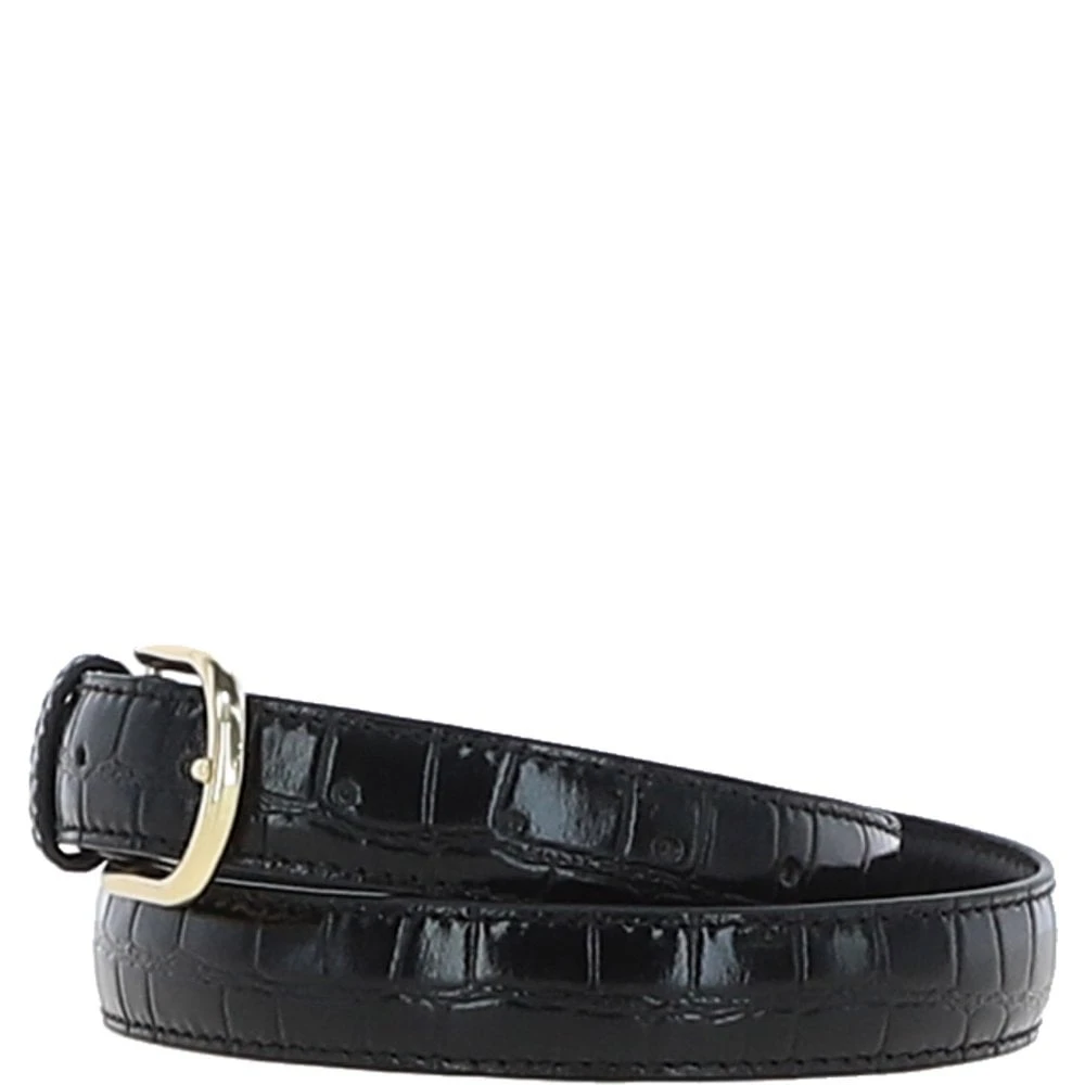 Women’s Croc Print Leather Belt with Gold Metal Pin Buckle Black: C-99