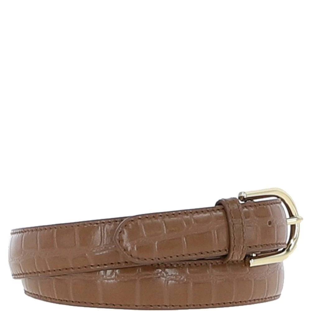 Women’s Croc Print Leather Belt with Gold Metal Pin Buckle Tan: C-99