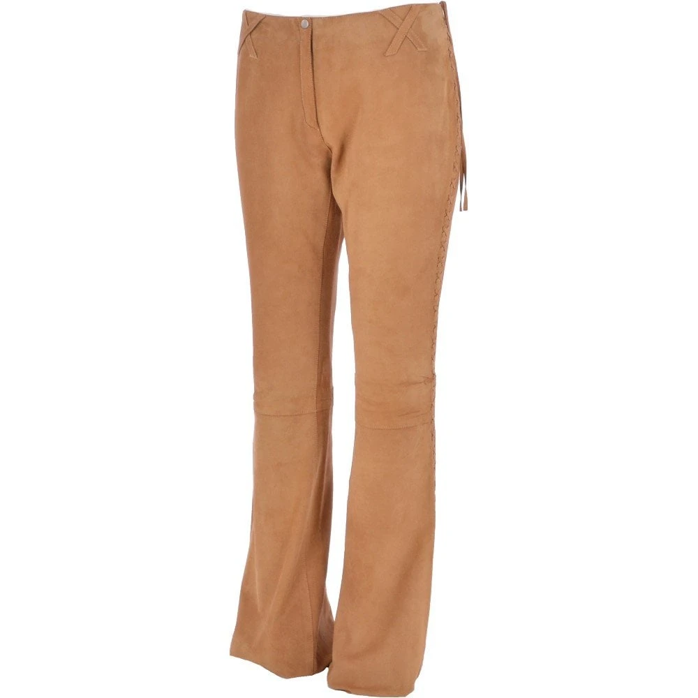 Women’s Flared 60’s Suede Leather Jeans Beige suede : Flared 3587