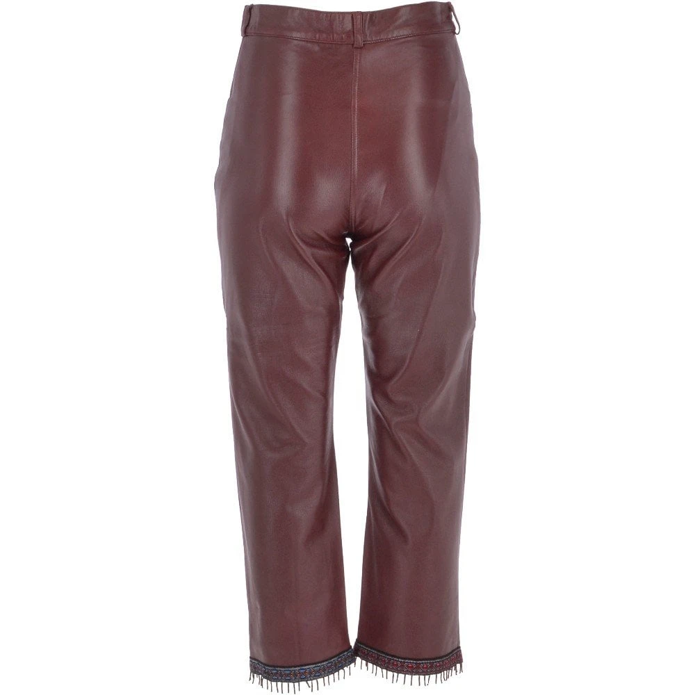 Womens 60’s Hippy Leather Jeans Burgundy: Kisa 0479