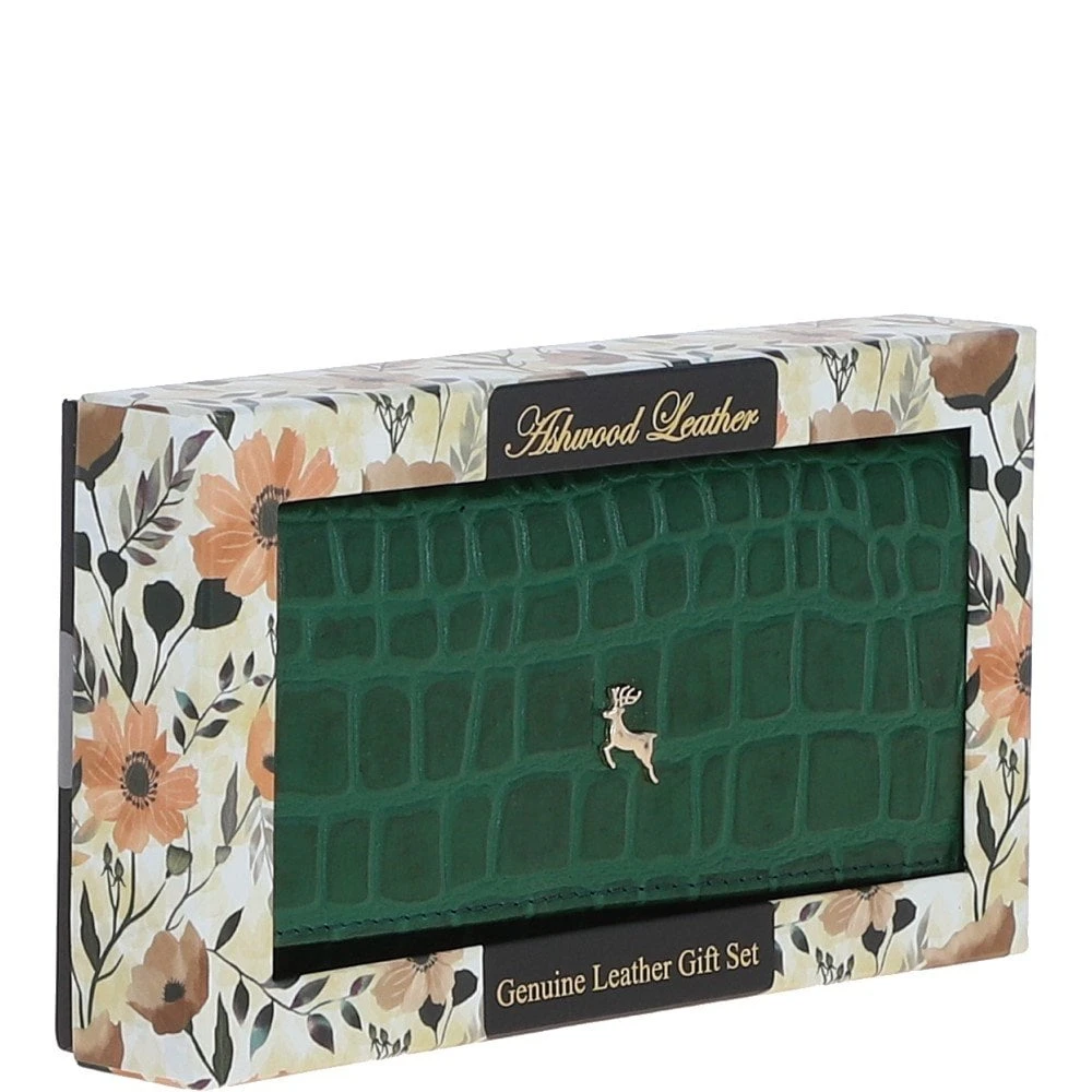 Ashwood Womens Croc 7 Card Large Leather Purse Green: C-05