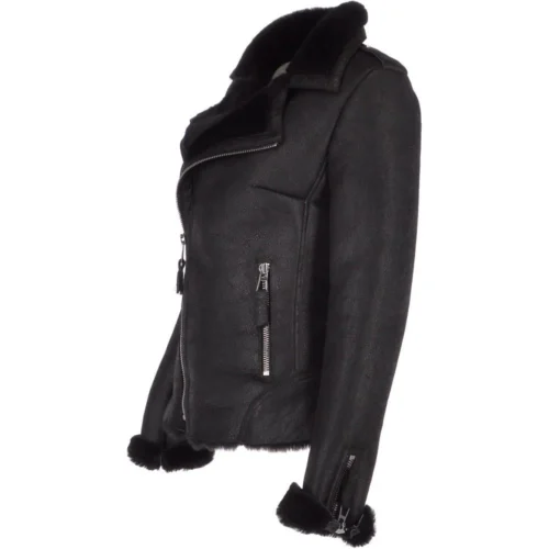 The fitted authentic curvaceous sultry cut of the classic ladies sheepskin aviator jacket is a real crowd pleaser. Fashioned in a soft luxury smooth tailored cut with vintage rough edge finishes. A real feminine jacket with a strong spotlight on luxury shearling leather.