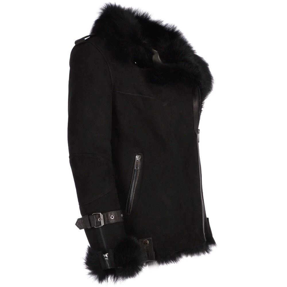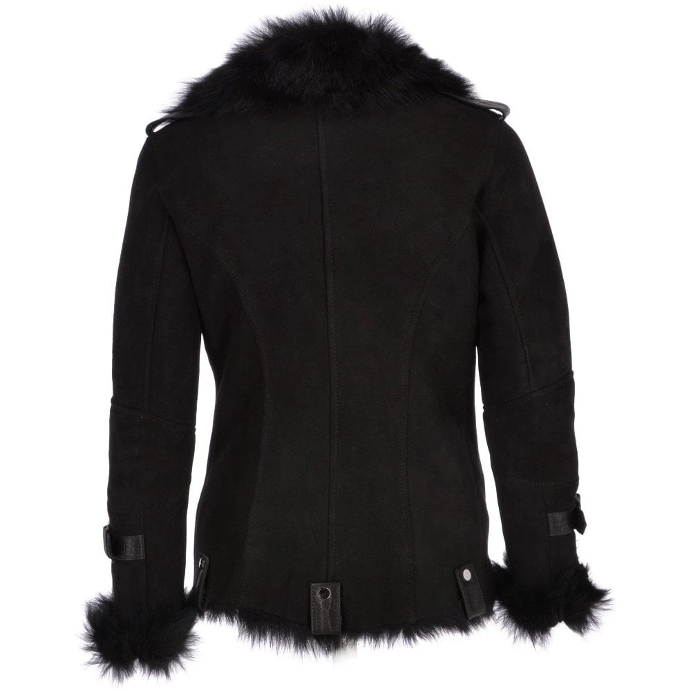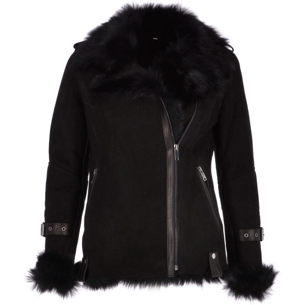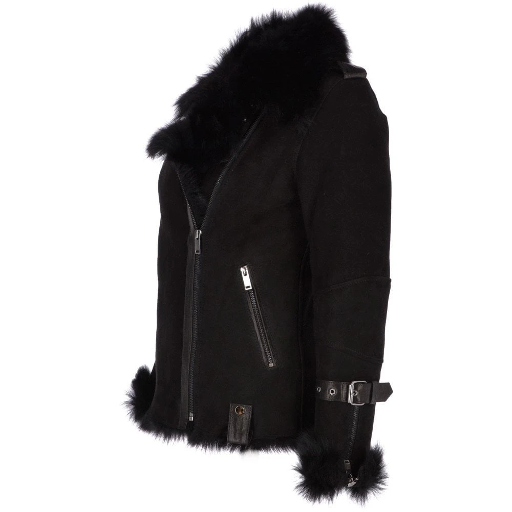 Womens Luxury Side Zip Toscana Suede Sheepskin Pilot Jacket Black : Lyanna