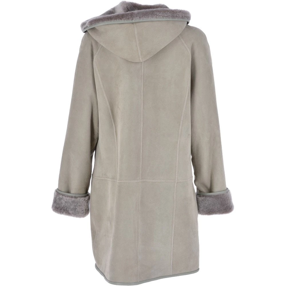 Womens Suede Sheepskin Hooded Coat: Heather